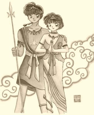 乱馬を制多迦童子、あかねを金加羅童子に見立てて書き出した作品です。