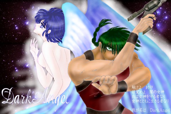半官半民さま作画 「DARK ANGEL」イメージ画 20万HITSのお祝いに描きおろしてくださいました。 ラフ画から見せていただいておりましたが・・・その時点で既に一之瀬はめろめろ。 半さんの絵って魔性が棲んでて大好きなのです。