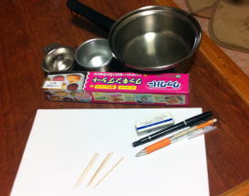 クッキングシート 鉛筆 油性マジック(無くてもOK) 消しゴム(できるだけ使わないように)…クッキングペーパの重しにもなる つまようじ…色数分は必要 鍋 湯煎用のカップ(または浅い食器) …アルミのプリンカップがおすすめ …洗うのが面倒な方は色数準備 土台用は結構チョコを溶かすので、少し大きめの湯煎用のカップやボウルも一つあったら便利です。 白い紙(作業台にもなるので、あった方が便利) 私は印刷用の紙を使用しました。レポート用紙でも良いと思います。 スプーン(大と小) ティッシュ あれば、電磁調理器 |