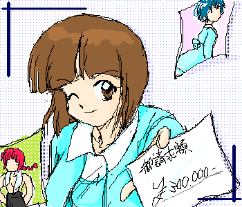 お祝いとしてやっぱり「おめでたい絵」とか、ここはいっちょ「乱馬とあかね」とか――、と息巻いていたにもかかわらず、ふと「三十万って大金だなー」と思ってしまった時、あたしのあたまの中でなびきが笑ってこちらを見ていました。