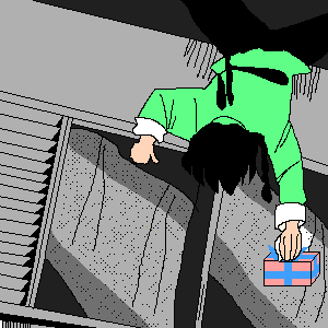 「よしっ寝てる」と、夜にこっそりとあかねの部屋に忍び込もうとしている乱馬です。