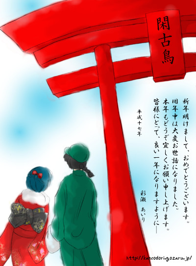 彩瀬あいりさま お参りモードな乱馬とあかねですね。 正面が拝めないのが憎い構図です。 きっと、乱馬は真っ赤になっているんだろうなあ。 やっぱり、日本人は着物だなあと思うこの頃。 天道家は一体、誰が着付けしているんでしょうか? あかねちゃんは絶対自分で着付けるのは無理でしょうね。(不器用さんですから。) かすみさん、またはのどかさんがやってあげるのかなあ。 (C)2005 jyusendo