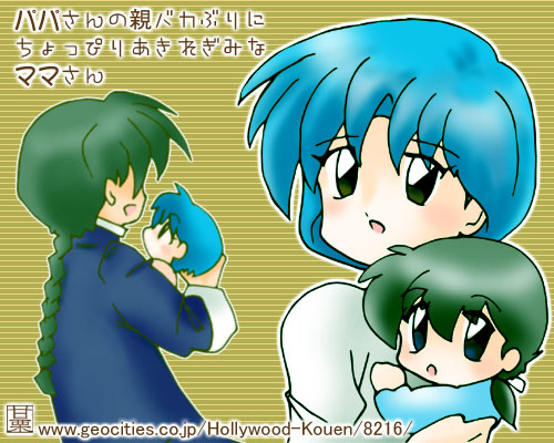 「親馬鹿パパさん」 甘栗ケンさまからいただいた 「なびきの独り言」イメージ画 実に感じが出てるんです。 もう、でれでれとして、女の子(未来ちゃん)を抱いているところが…。 彼女が親元を離れ、結婚するときにはどうなってるんでしょうか? (C)2004 jyusendo